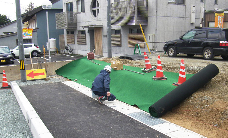 ①本工事は、松江市大庭町地内の、道路改良工事であり、主な工種はアスファルト舗装工です。