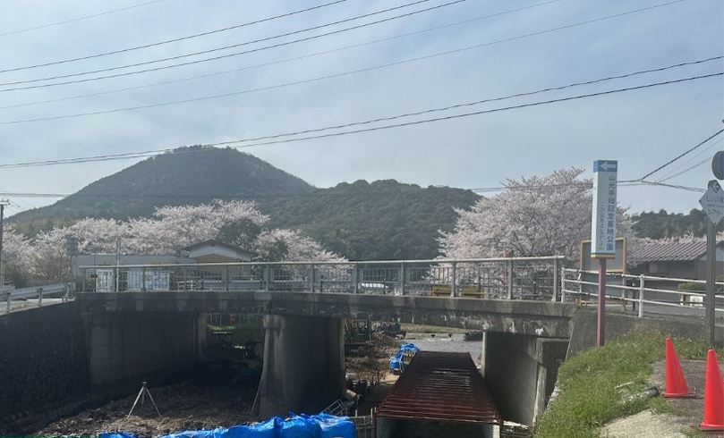 ①本工事は、松江市八雲町西岩坂、桑並川橋他1橋の橋梁耐震、橋梁修繕工事であり、主な工種は橋脚の巻立工、橋脚、橋台の落橋防止装置取付である。